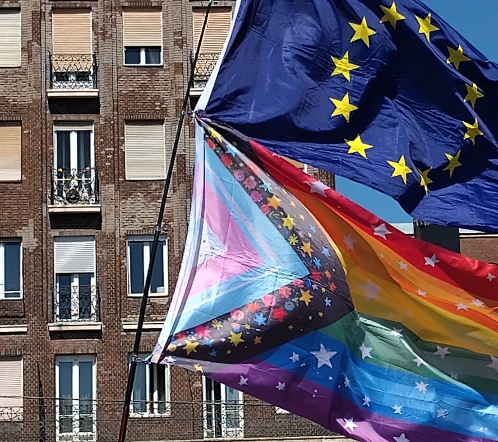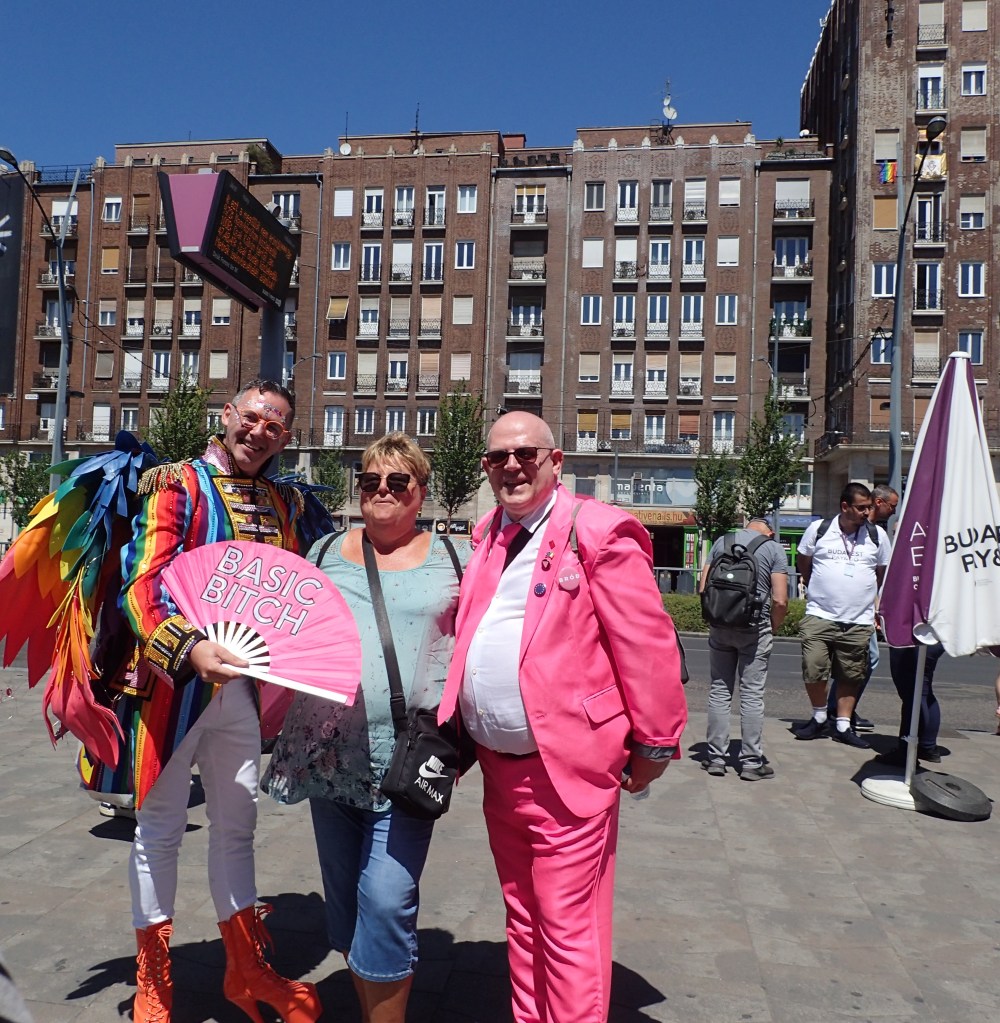Already three-quarters of an hour have passed and the group has not yet begun to move. From my restricted observation point among the fortunate shelterers under the tree-strip, I hear an occasional cheer come up when someone prominent is sighted. The loudest is for Budapest’s progressive mayor, Gergély Karacsony, and deservedly: he took the stand to declare Pride 2025 a city event rather than a national one, so that the police could not legally intervene. Courage all too rare in these days of illiberal rollback…